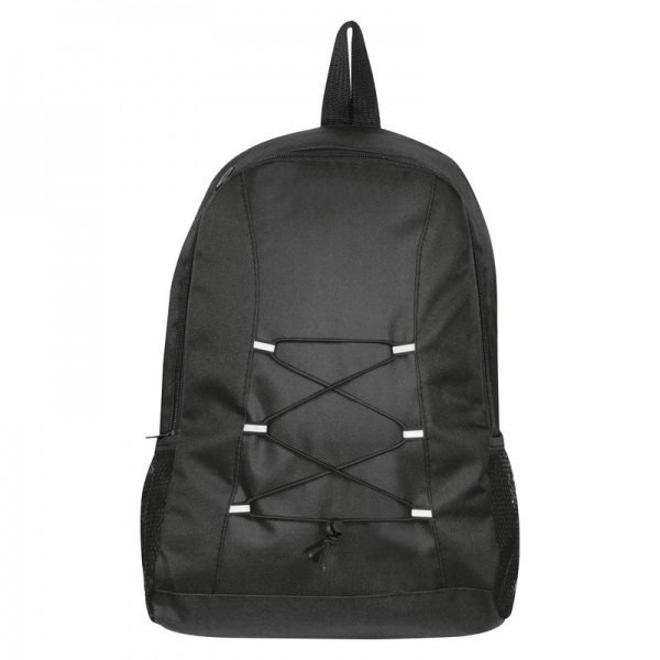 Ruksak zo 600D polyesteru s dvoma bočnými sieťovými vreckami, výstupom na slúchadlá a polstrovanými ramennými popruhmi.