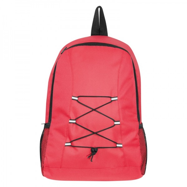 Ruksak zo 600D polyesteru s dvoma bočnými sieťovými vreckami, výstupom na slúchadlá a polstrovanými ramennými popruhmi.