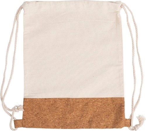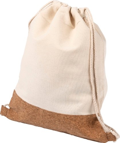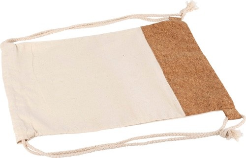 Bavlnený (250 g/m2) batoh so sťahovacou šnúrkou. Korková tkanina v spodnej časti batohu.