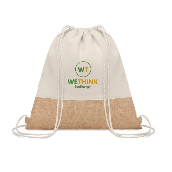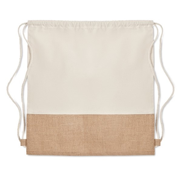 Bavlnený vak so šnúrkou a s jutovým detailom v spodnej časti.