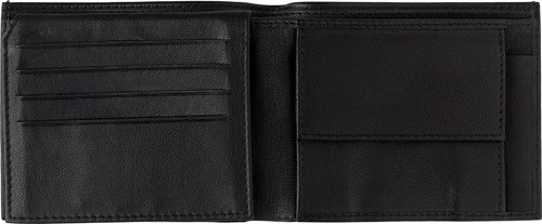 Kožená peňaženka (zo štiepenky) RFID s priečinkom na mince uzavretým gombíkom a rôznymi ďalšími vreckami na hotovosť alebo karty.