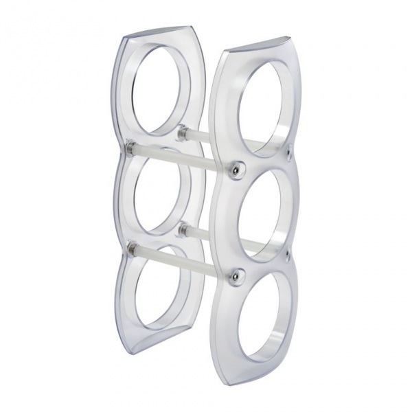 Matný plastový stojan na víno ponúka priestor pre tri fľaše. Zahŕňa skrutky a návod na použitie.