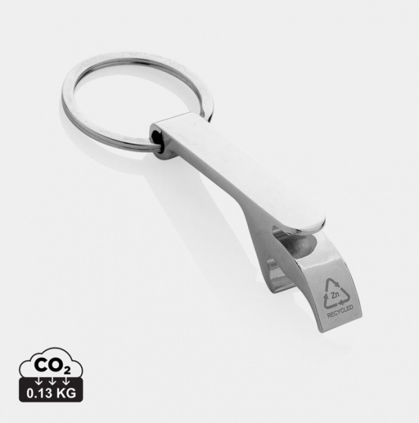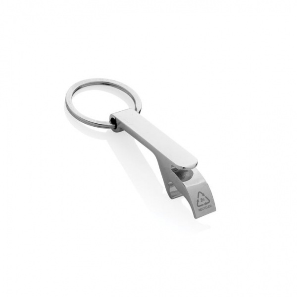 Extra pevná kľúčenka s otváračom na fľaše a plechovky. Vyrobená z RCS recyklovanej zliatiny zinku. RCS certifikácia zaisťuje garanciu použitia recyklovaného materiálu. Podiel recyklátu: 84%. Balené v papierovom obale.