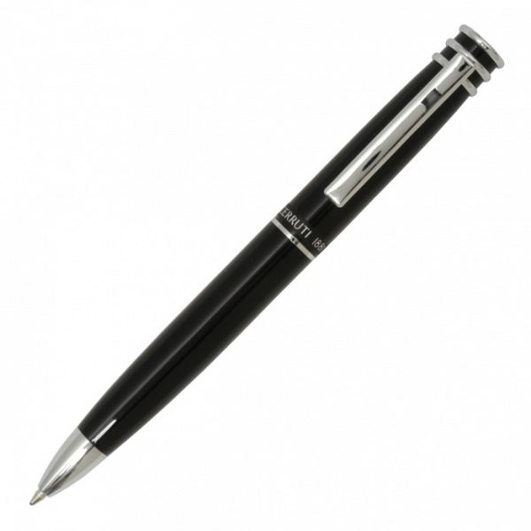 Guľôčkové pero RING TOP od CERRUTI 1881 je veľmi pekný klasický a elegantný písací nástroj. Hlaveň je v čiernom laku, detaily v chróme. Úchopová časť je pohodlná. Pero je dodávané v peknej čiernej darčekovej krabičke. Modrá náplň.