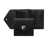 Peňaženka je vyrobená z kamienkovej vegánskej kože (PU). Podpisový štítok je mierne nadrozmerná a klenutá verzia ikonického loga „C“, podpísaná rytinou Cacharel. Viacero priehradiek na karty, vrecko na mince a 2 priehradky na bankovky.