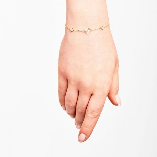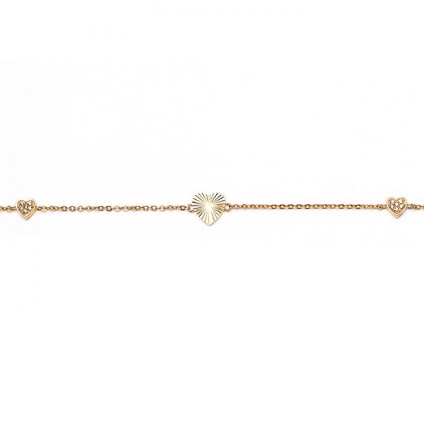 Kolekcia Alix Jewelry je jemná a ženská, s 3 jemnými príveskami srdiečok: stredné, väčšie je jemne gravírované a 2 menšie sú osadené jemným bielym zirkónom. Tieto kusy sú vyrobené z mosadze.