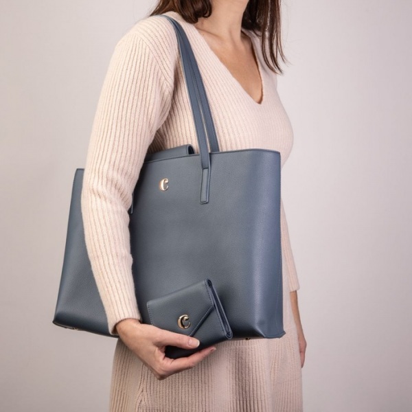 Kabelka je dostatočne veľká na uloženie notebooku a osobných vecí. Je vyrobená zo starostlivo vybranej kamienkovej vegánskej kože (PU). Podpisový štítok a klenutá verzia ikonického loga „C“, podpísaná rytinou Cacharel. Vnútro s malou priehradkou na zips.