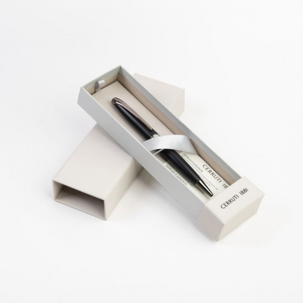 Pero "Abbey" je postavené na jednej z najznámejších siluet Cerrutiho písania. Decentný čierny lak, ktorý je zakončený kombináciou chrómových lemov. Modrá náplň. Darčeková krabička Cerruti.