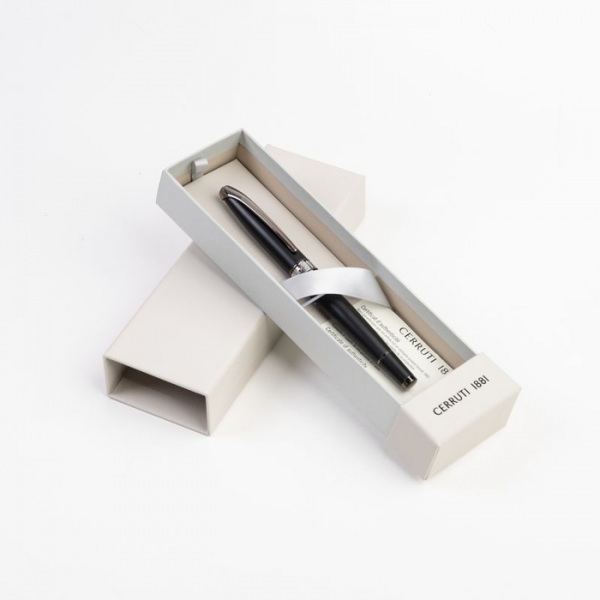 Pero "Abbey" je postavené na jednej z najznámejších siluet Cerrutiho písania. Decentný čierny lak, ktorý je zakončený kombináciou chrómových lemov. Čierna náplň. Darčeková krabička Cerruti.