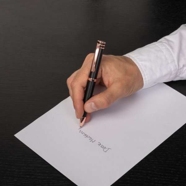 Pero „Austin“ je postavené na jednej z najznámejších siluet cerruti: na vrchnej časti prsteňa. Modrá náplň. Darčeková krabička Cerruti.