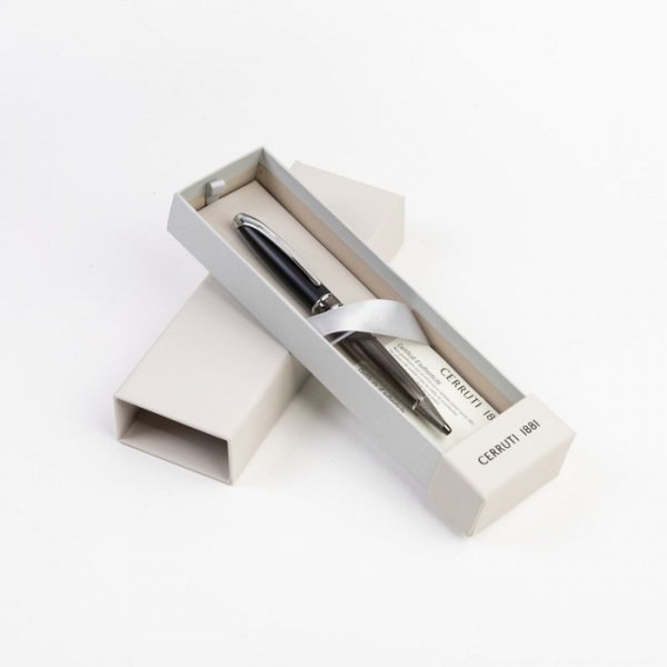Pero "Abbey" je postavené na jednej z najznámejších siluet Cerruti písania. Matný čierny lak s diamantovým rezom. Modrá náplň. Darčeková krabička Cerruti.