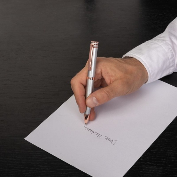 V kolekcii "Austin Diamond" sa hráme s diamantom brúseným gravírovaným povrchom zdobeným krásne pokovovanými kovovými lištami. Modrá náplň. Darčeková krabička Cerruti.