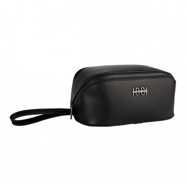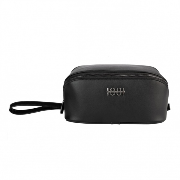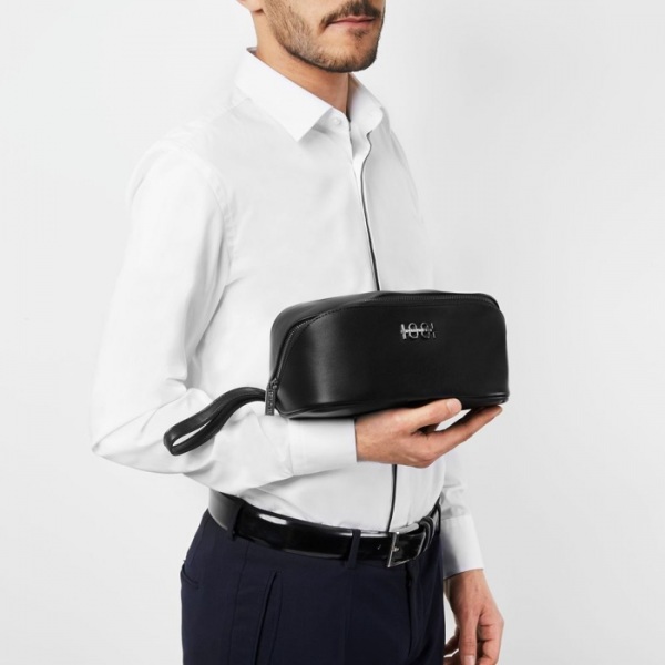 Kozmetická taštička "Irving" je luxusná, skladná a jednoduchá. Vyrobené z krásne štruktúrovaného materiálu a zdobené novým podpisovým štítkom CERRUTI 1881, jeho tvar je nielen originálny, ale je tiež veľmi praktický vďaka popruhu na ruku.