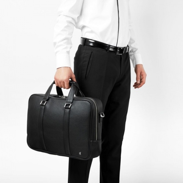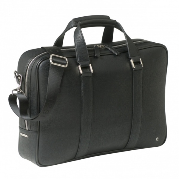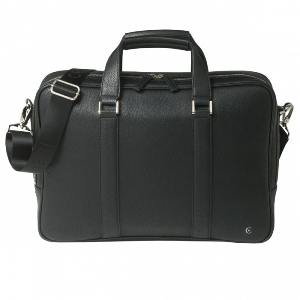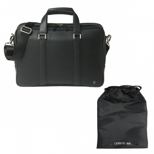 Taška s čiernou imitáciou jemnej zrnitej kože s kvalitnou nylonovou podšívkou. Vnútro má špeciálnu časť na uloženie a ochranu vášho 15" notebooku. Taška je dodávaná s odnímateľným a nastaviteľným ramenným popruhom s logom CERRUTI 1881 tón v tóne.