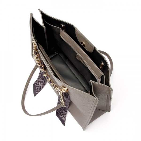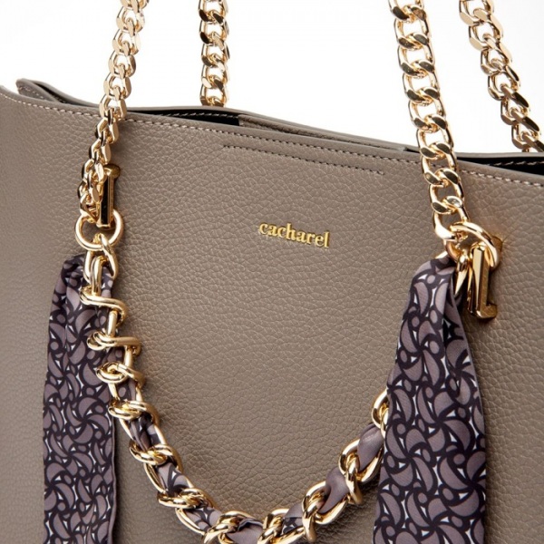 Vďaka svojmu veľkému objemu zaisťuje dostatočnú kapacitu. Krásna matná zrnitá textúra dodáva. Vyrobená z vegánskej kože a má premyslené detaily vrátane dvojitej rukoväte pre všestranné možnosti nosenia. Jedinečný nádych dodáva malá ozdobná potlačená šatka