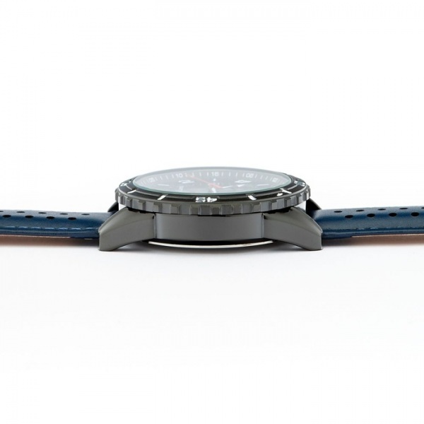 Táto verzia sa môže pochváliť žiarivým modrým náramkom z pravej kože v kombinácii s elegantným čiernym puzdrom a ciferníkom. Čierny rám a červené tlačidlá dodávajú šmrnc. Vodeodolnosť 3 ATM.