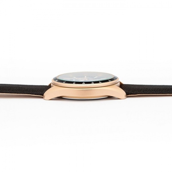Táto verzia predstavuje náramok zo špeciálnej látky a pravej kože, ktorý ponúka jedinečný a luxusný nádych. Čierny dizajn v kombinácii s ružovo zlatým puzdrom vytvára elegantný a sofistikovaný estetický vzhľad.
