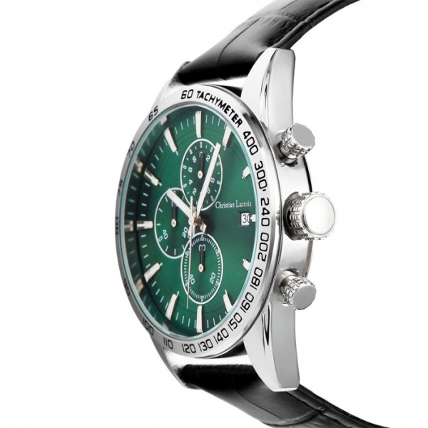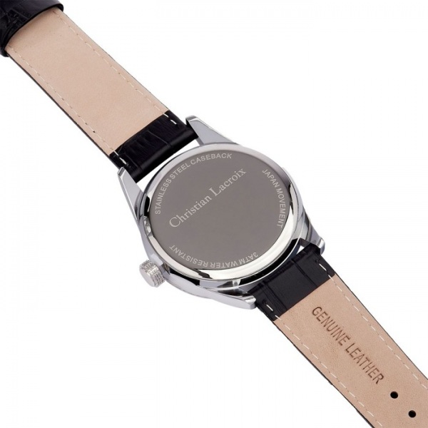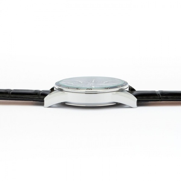 Tieto hodinky sa môžu pochváliť elegantným dizajnom s čiernym remienkom z pravej kože, chrómovým puzdrom a nápadným slnečným ciferníkom. Vodeodolnosť 3 ATM.