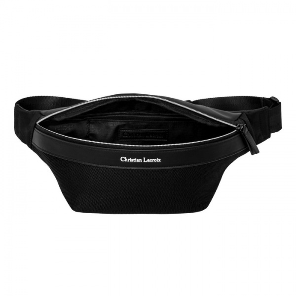 Spojenie nylonu, sieťoviny a hladkého PU. Kontrastné biele detaily zipsu – obrátený biely zips vytvára efekt „bielej línie“. Logo Christian Lacroix vyhotovené v bielom TPU ladí s detailom zipsu. Vnútro má podšívku s monogramom.