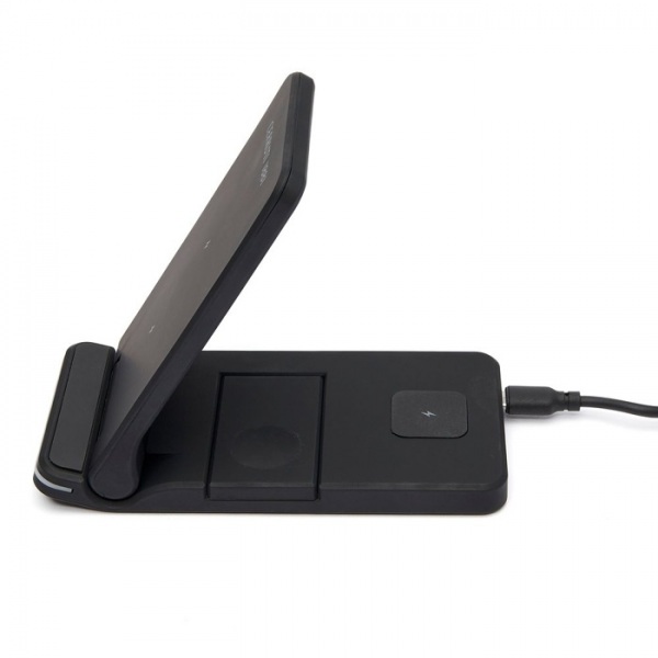 Skladacia bezdrôtová nabíjačka "Block" pre bezproblémové cestovanie. Táto kompaktná nabíjačka vám umožňuje súčasne napájať tri zariadenia – váš telefón, slúchadlá a hodinky Apple Watch.