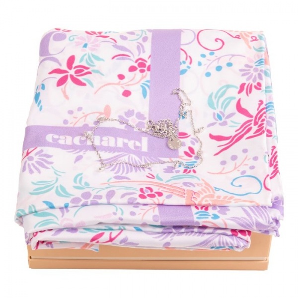Dámska sada v darčekovom balení obsahuje šatku a náhrdelník.