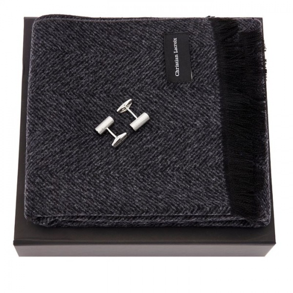 Pánska sada v darčekovom balení obsahuje šál (180 x 35 cm) a manžetové gombíky.