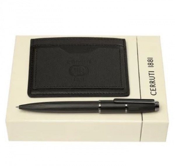 Pánska sada v darčekovom balení obsahuje guľôčkové pero (modrá náplň) a peňaženku na karty.