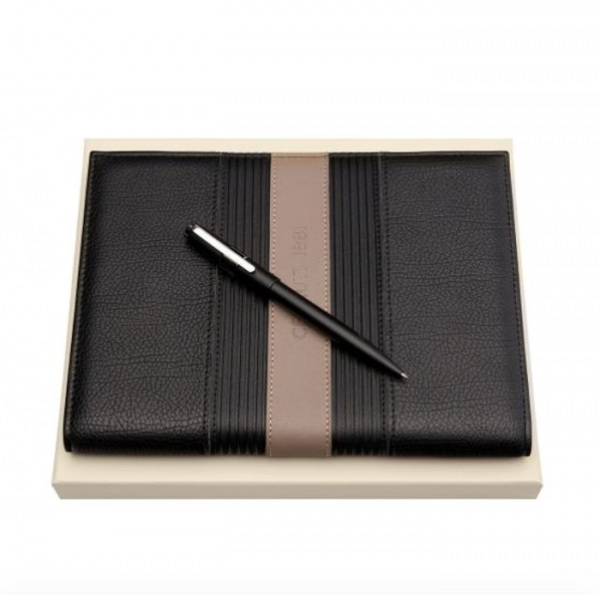 Sada obsahuje guľôčkové pero s modrou náplňou a portfólio formátu A5 s blokom s čistými stranami. Darčekové balenie.