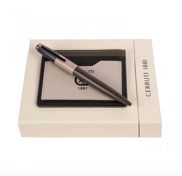 Pánska sada v darčekovom balení obsahuje guľôčkové pero (modrá náplň) a peňaženku na karty.