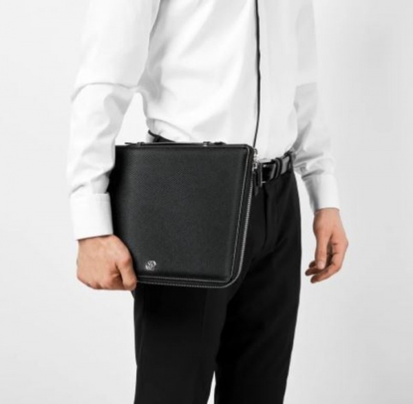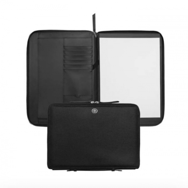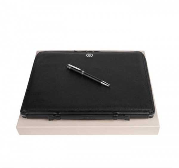 Sada obsahuje roller s čiernou náplňou a portfólio formátu A4 na zips s blokom s čistými stranami. Darčekové balenie.