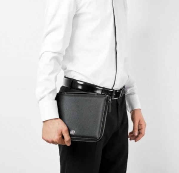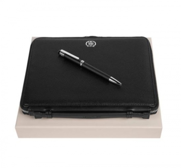 Sada obsahuje roller s čiernou náplňou a portfólio formátu A5 na zips s blokom s čistými stranami. Darčekové balenie.