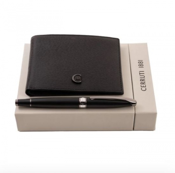 Pánska sada v darčekovom balení obsahuje roller (čierna náplň) a peňaženku s priečinkom na karty, aj mince.