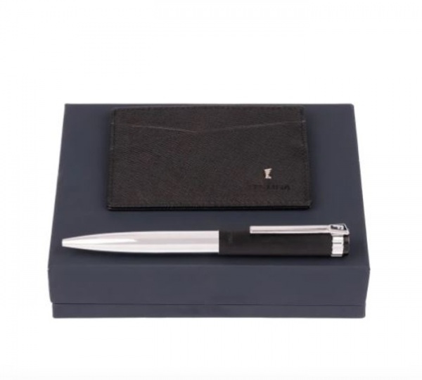 Sada obsahuje guľôčkové pero s čiernou náplňou a obal na karty. Darčekové balenie.