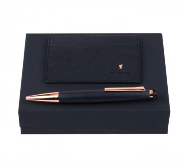 Sada obsahuje guľôčkové pero s čiernou náplňou a obal na karty. Darčekové balenie.