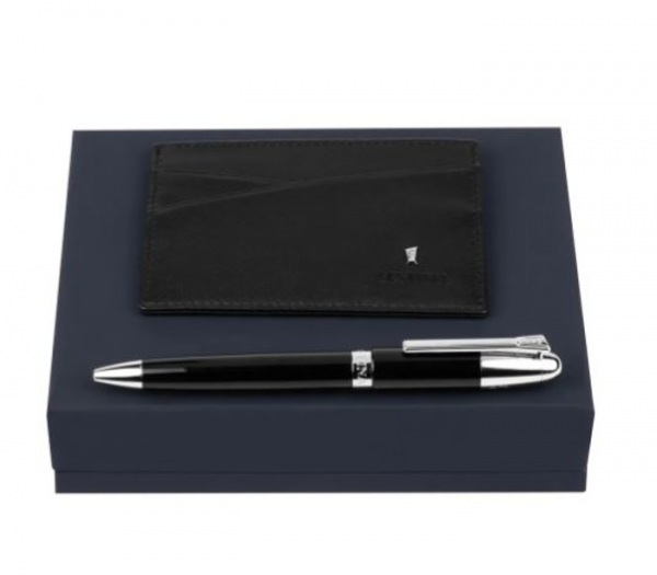 Sada obsahuje guľôčkové pero s čiernou náplňou a obal na karty. Darčekové balenie.