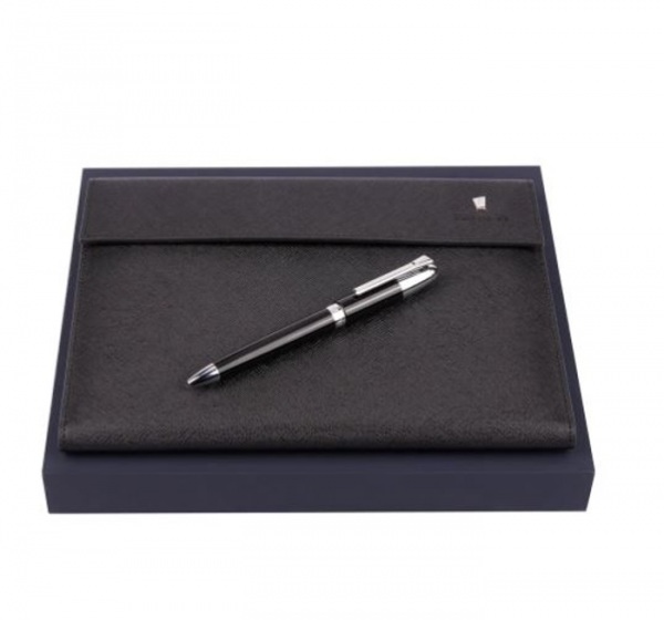 Sada obsahuje guľôčkové pero s čiernou náplňou a portfólio formátu A5 s blokom s čistými stranami. Darčekové balenie.