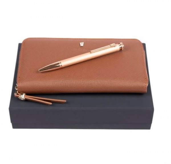 Dámska sada v darčekovom balení obsahuje guľôčkové pero (čierna náplň) a peňaženku.