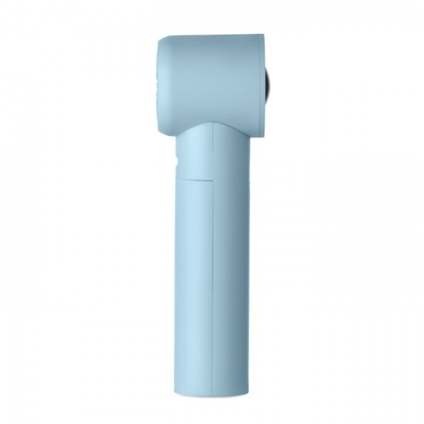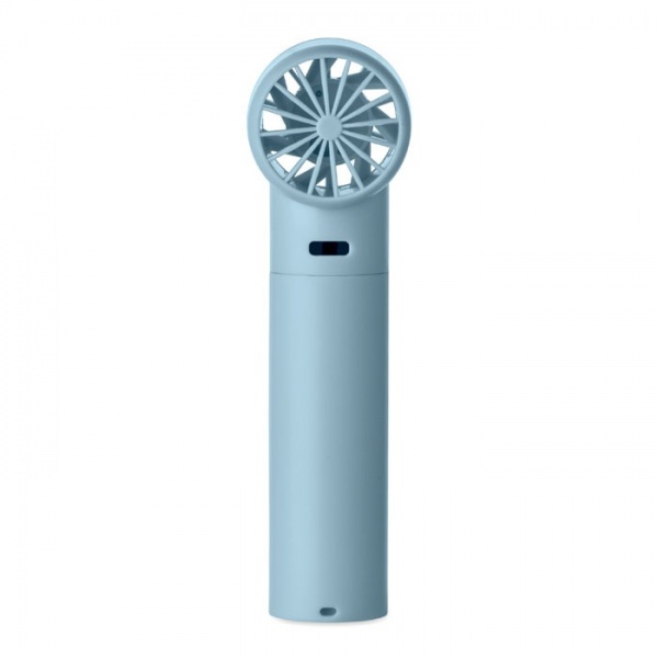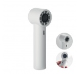 Ručný mini ventilátor z ABS materiálu s displejom a 5 nastaveniami rýchlosti. Súčasťou balenia je vymeniteľná nabíjateľná lítiová batéria s kapacitou 2600 mAh.