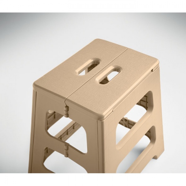 Prenosná skladacia stolička vyrobená z PP plastu s protišmykovým povrchom. Nosnosť až 120 kg.