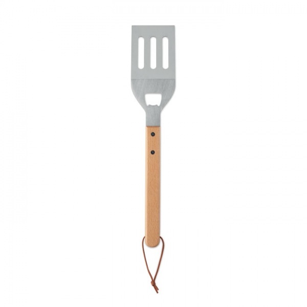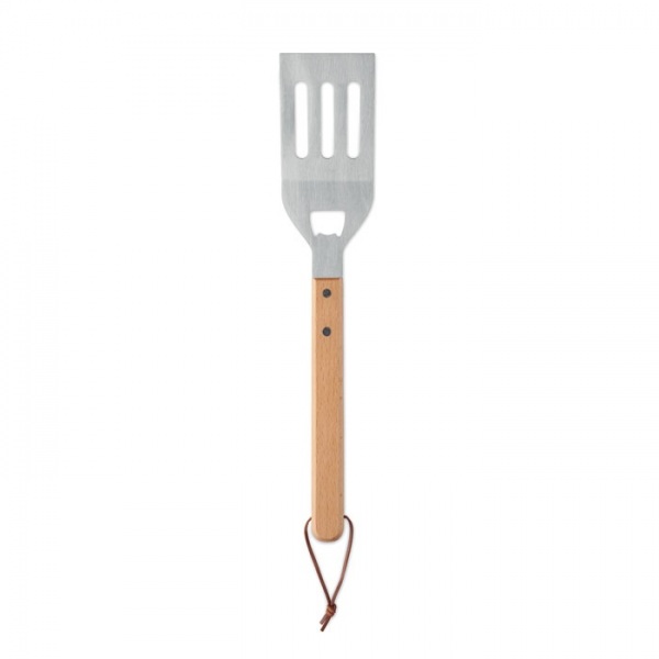 Grilovacia špachtľa z nehrdzavejúcej ocele s bukovou rukoväťou a integrovaným otváračom na fľaše. Súčasťou balenia je PU závesné lano pre jednoduché skladovanie.