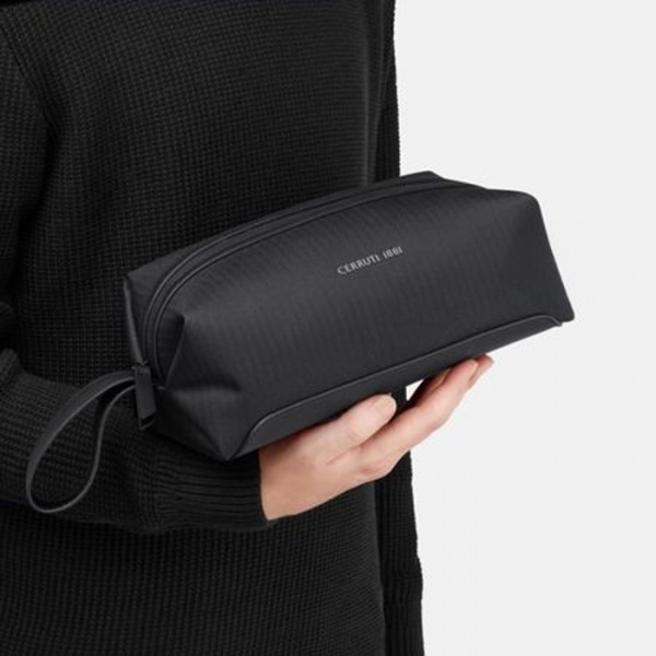 Kozmetická taštička z kolekcie Holborn je vyrobená z inovatívnej tkaniny s textúrou.
