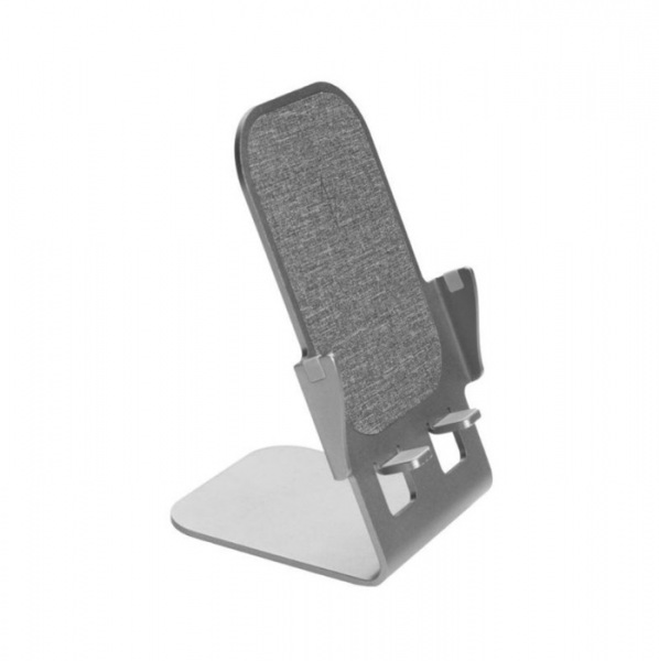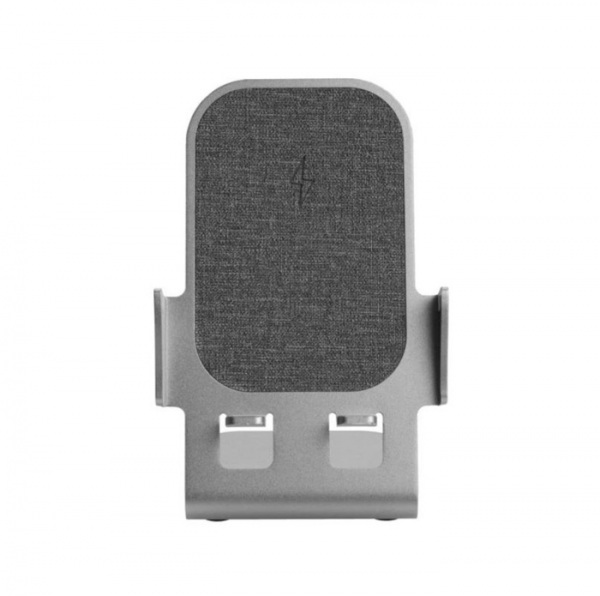 Stojan na telefón potiahnutý sivou látkou s bezdrôtovým nabíjaním 15W. Vstup 9V/2A, 12V/1,5A (USB-C PD). Ochrana proti prehriatiu a prepätiu. Nabíjací kábel USB-C. Balené v krabičke s certifikátom pravosti.