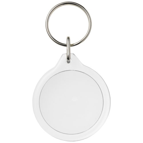Guľatá kľúčenka s kovovým krúžkom.
