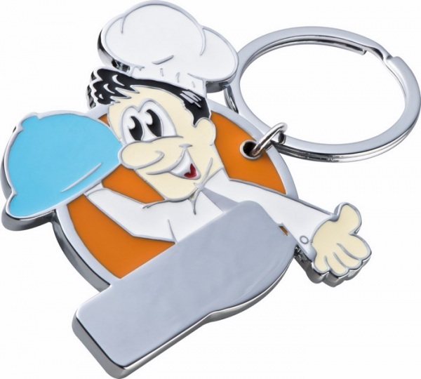 Kovová kľúčenka s farebným lakovaním vpredu.