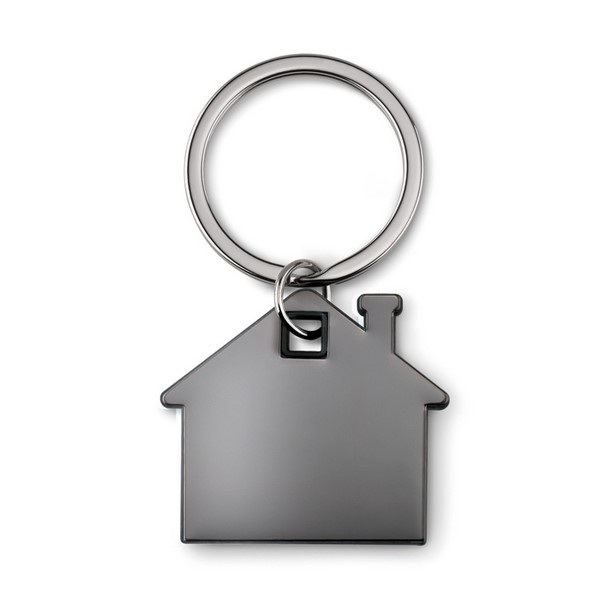 Kľúčenka v tvare domčeka z nerezu a ABS plastu.