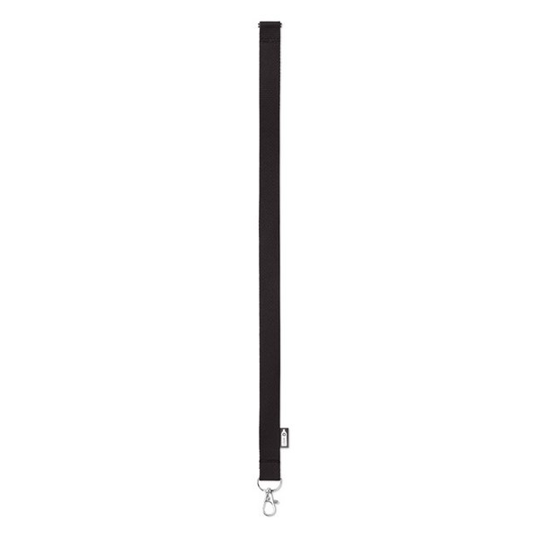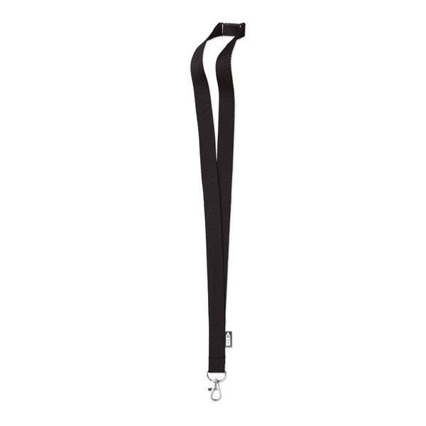 Šnúrka na krk z RPET s karabínkou a bezpečnostnou poistkou. Šírka 2 cm. Sublimačná potlač je možná iba na biely produkt.