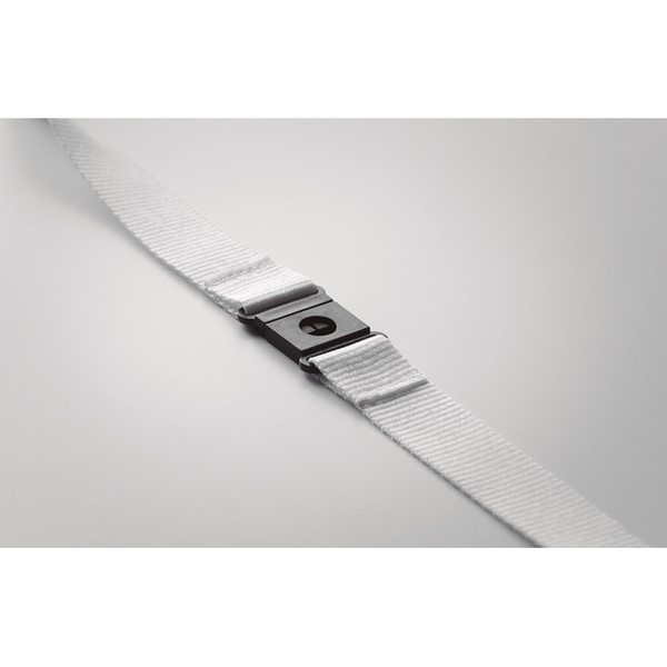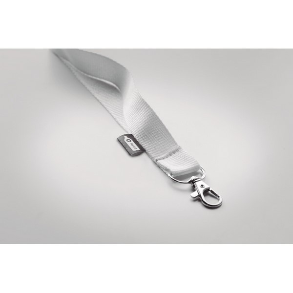 Šnúrka na krk z RPET s karabínkou a bezpečnostnou poistkou. Šírka 2 cm. Sublimačná potlač je možná iba na biely produkt.