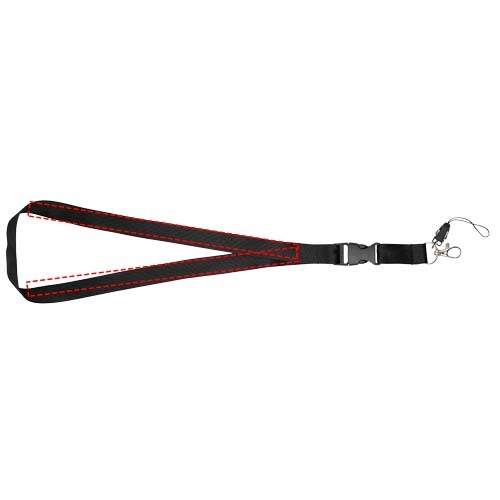 Šnúrka na krk Sagan s odnímateľnou prackou, držiak na telefón. Multifunkčná šnúrka na krk s odnímateľnou prackou, háčikovou sponou a držiakom telefónu.