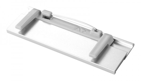 Menovka z hliníka s vymeniteľnými papieriky.