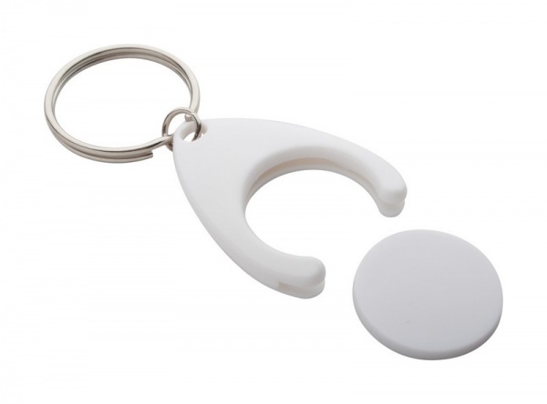 Plastový prívesok na kľúče s plastovým žetónom do nákupných vozíkov.